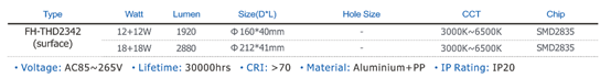 -Color temperature: 3000K~6500K