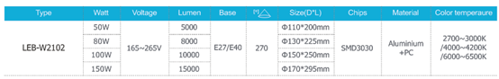 ·Color temperature: 2700~3000K/4000~4200K/6000~6500K