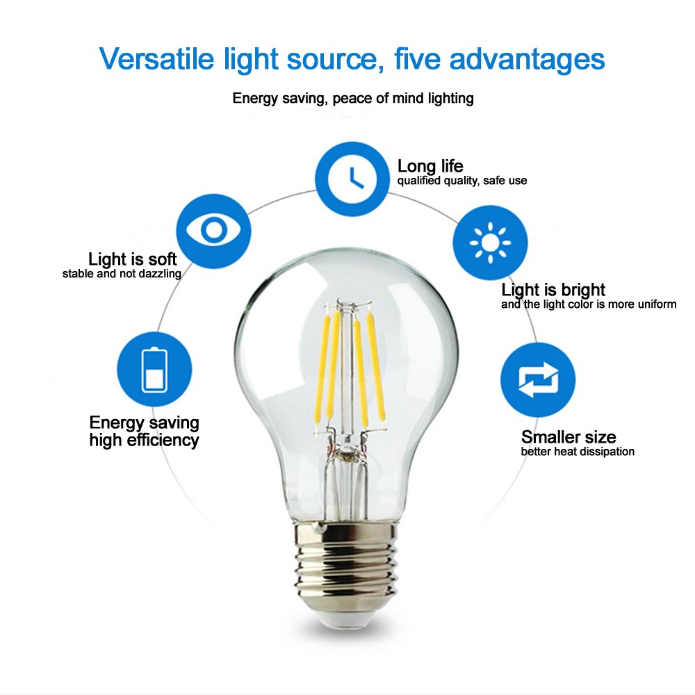-LED Filament bulbs replace 60W incandescent bulb by 6W LED, save over 90% on electricity bill of lighting. NOTE: This LED bulb is not dimmable, please DO NOT use them with dimmer switch.