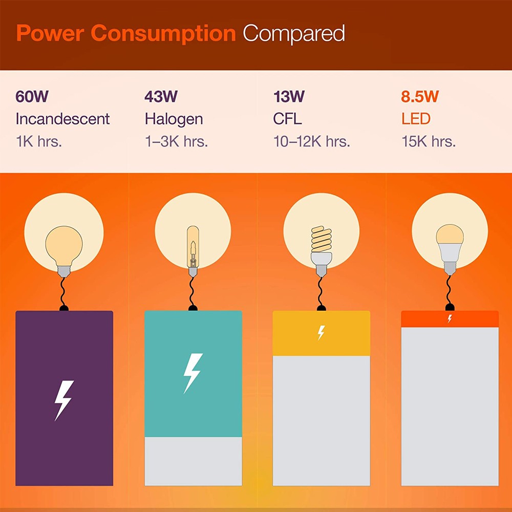 These LED light bulbs require less energy and can save money on your energy bill. Each soft white light bulb works as a great replacement for old 60 watt incandescent bulbs