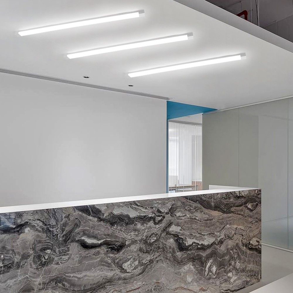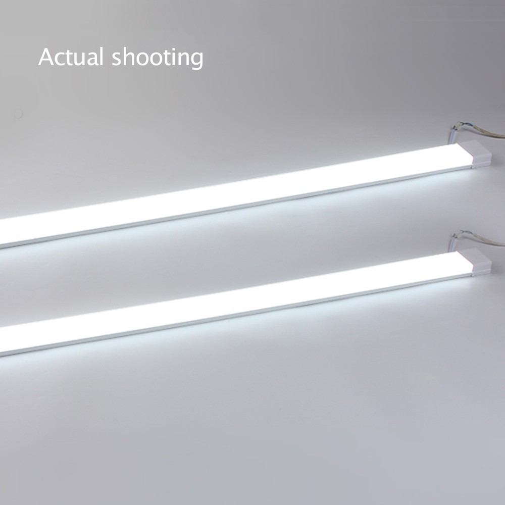 【LINKABLE AND NO FLICKER】This led tube light could connect up to 18 tube lights together with 7 inches connector cords. comfortable led shop light fixture. With 180° wide-angle beam, This led ceiling and closet light is no flickering. No mercury or hazardous materials. No UV or IR Radiation. Frosted cover for anti-glare eye protection.