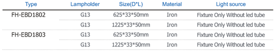 •Metal housing with high-gloss, baked-enamel finish; G13 lampholder