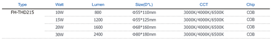 •Uniform illumination with integrated spot type LED (COB) with parabolic aluminized reflector.