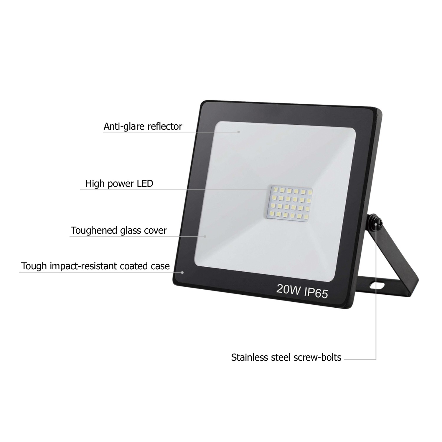 •【IP66 WATERPROOF】The IP66 certified LED floodlight is made of die-cast aluminum shell,which is sufficient for any weather. Perfect for outside lighting, such as garden lights, villa lights and other outdoor lights.