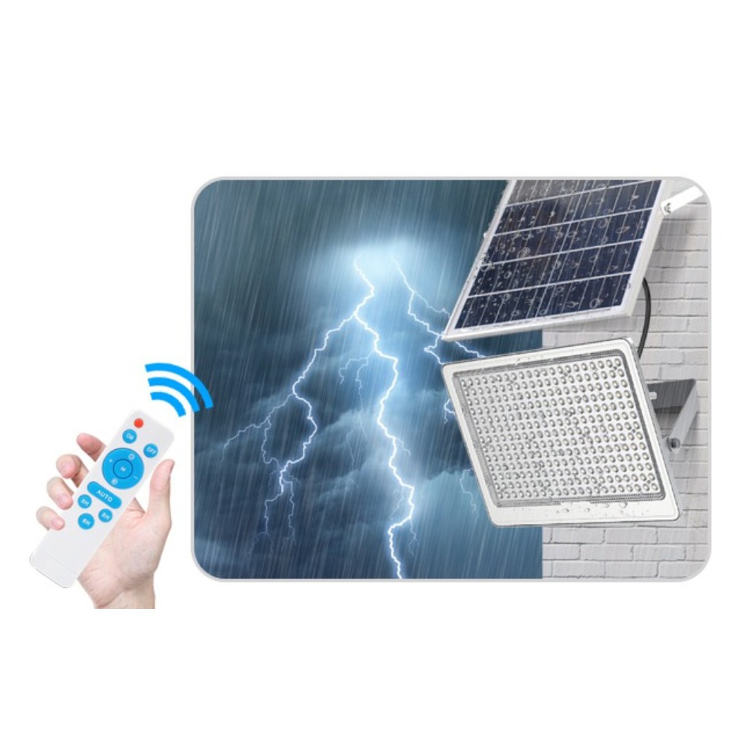 Multiple Control - This solar powered flood light is controlled by upgrade remote control , for auto modes, gradient mode, full bright mode, half bright mode, 3/5 hours timing mode